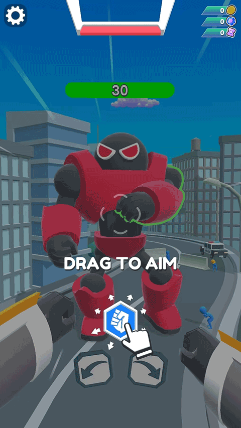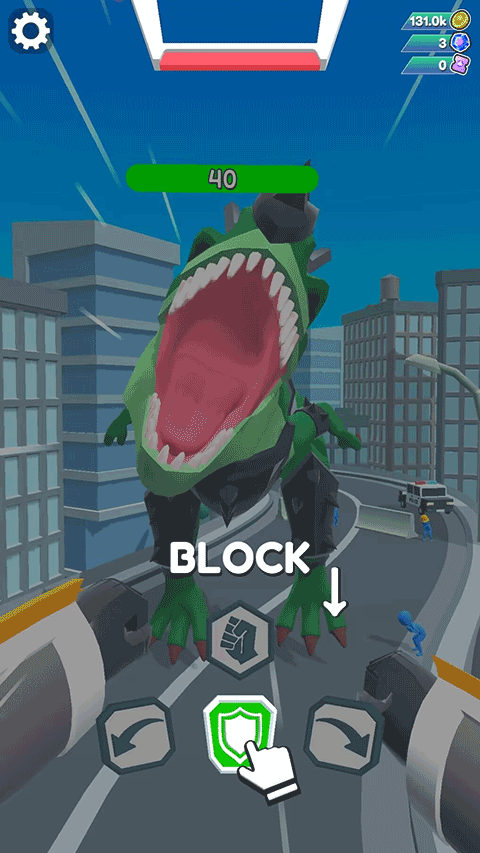 2、箭头图标用于阻挡敌人进攻,点击左箭头机器人抬左手,点击右箭头抬右手。