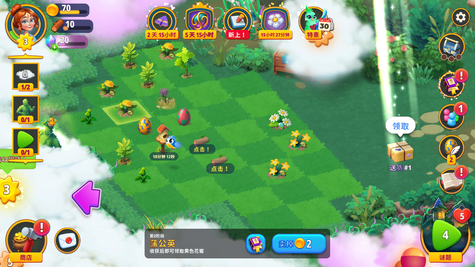 3、每通过一个关卡,你将获得神秘的蛋篮和异国风情的野生动物等奢华奖励,让花园更具魅力。