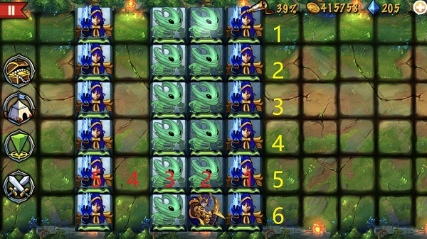 小技巧1:电法流闯关,发现离你两格远有一排墙,后面躲着电系法师,把你第一排法师162534分别交换一下位置,再前进,不会攻击打掉墙,放出法师来灭你全家,然后继续前进打死法师。
