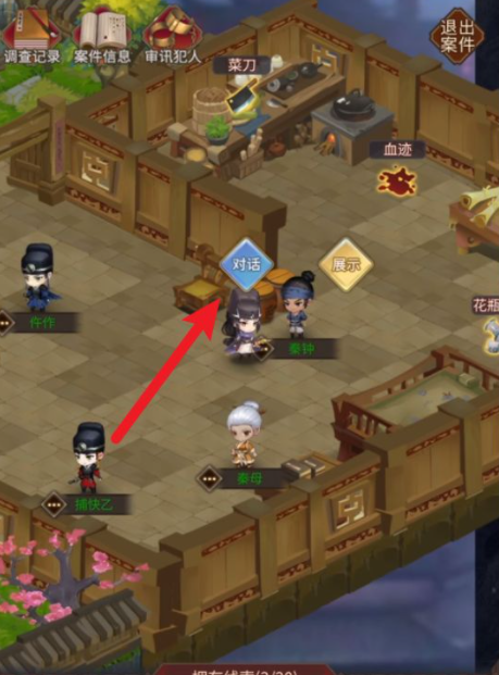 接下来,进入调查阶段,与案发现场附近的居民对话,收集重要线索。
