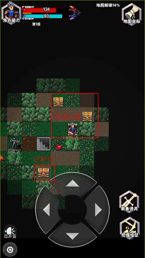 5.注意要判别普通宝箱与宝箱怪,宝箱怪会攻击你,并且实力非常强,而普通宝箱能够直接开箱得到物品;