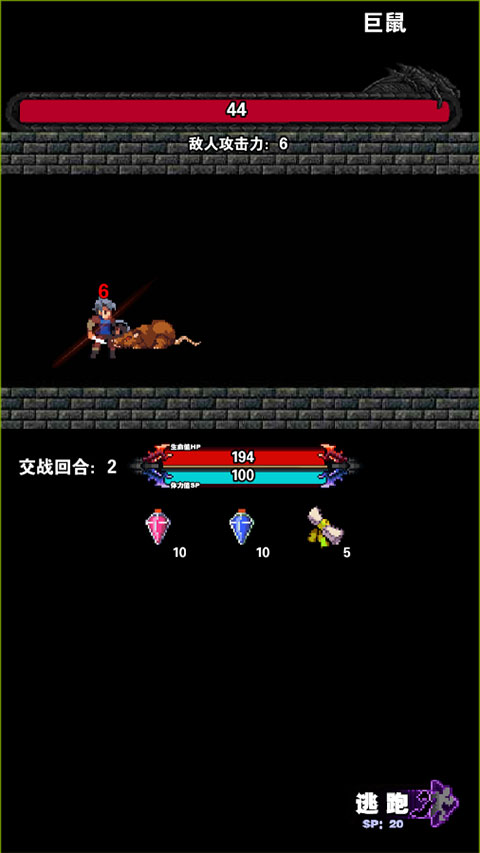 4.遇到敌人会自动展开回合制攻击,如果打不过可以点击右下方的逃跑;