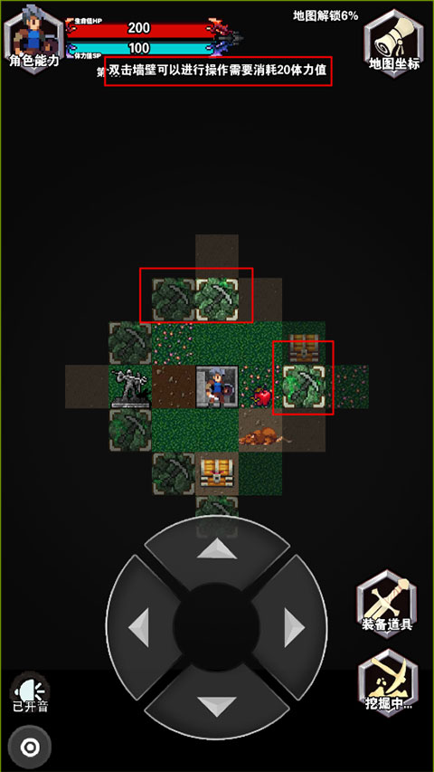 3.在关卡中可以双击挖掘墙壁,但是需要消耗20体力值;
