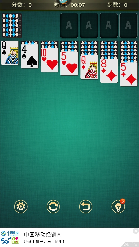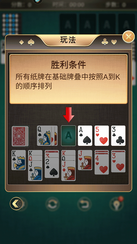 所有纸牌在基础牌叠中按照A到K的顺序排列