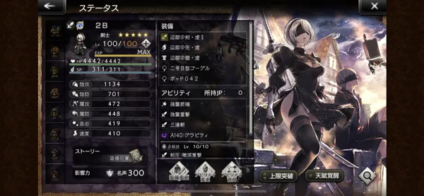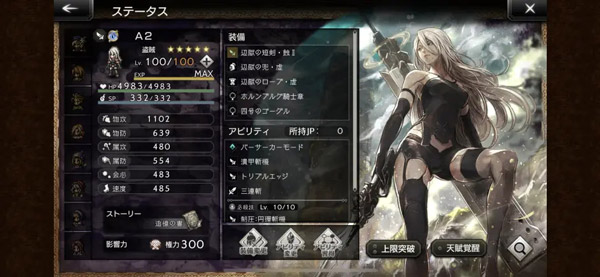 像塞拉斯一样,因为A2能够一人分饰三角,在前期是很值得上场的角色。游戏体验直线上升,即使不开狂战士模式也有很强的输出。唯一的缺点是,因为现在尼尔的联动已经结束了,而且近期不会有复刻,所以此角色近期无法获取,过这村没这店了。