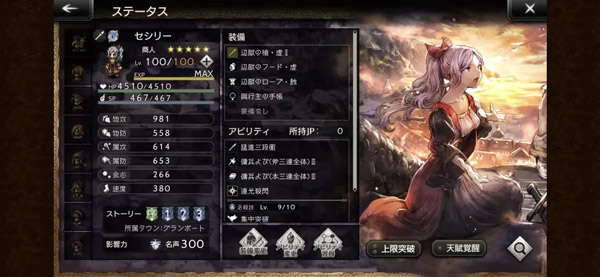 商人,被称为女版塞拉斯的角色。技能形态参考塞拉斯,单体高伤和群体三连。塞西莉能打枪,斧,书三种物理输出,也是一人分饰三角,兼顾破盾和输出。前期敌人弱点不明的时候非常好用,特别是弱书的敌人,学者们打不出高物理输出,这时候就要塞西莉来打书弱点了。