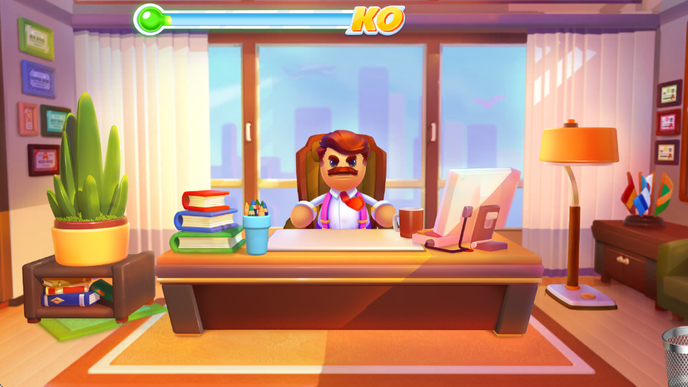 踢走老板是一款充满极限幽默和创意的解压游戏,商店中的武器琳琅满目,从传统的棍棒到奇怪的道具应有尽有,每种武器的攻击方式都极具创意。玩家可以将老板拖来拖去,甚至将他猛力撞向墙壁,带来前所未有的解压感。游戏中其他员工围观时的幸灾乐祸表情,进一步增强了游戏的幽默氛围,让你感受到“老板遭报应”的满足感。