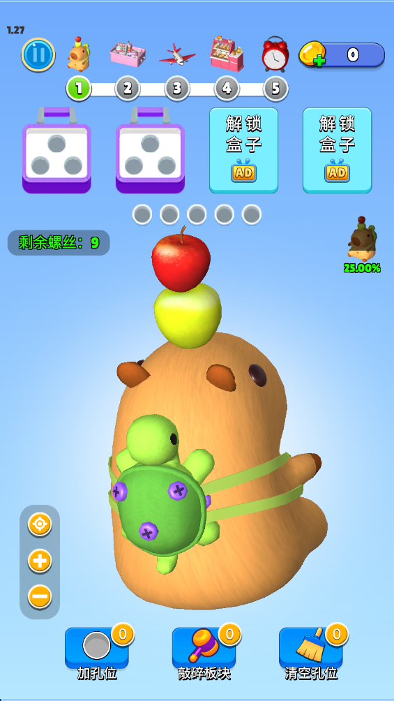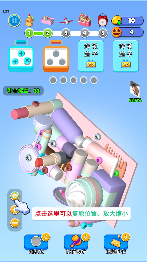 3D螺丝爆破拼图是一款集空间推理与策略规划为一体的创新休闲游戏,玩家将在游戏中挑战一系列精心设计的3D螺丝谜题,目标是通过巧妙的螺丝拆卸技巧,逐步解决复杂的机械结构。你将面临多种螺丝和螺母的组合,拆解时需要精确操作,避免将螺丝卡住或者错过关键的拆卸步骤。每一次成功拆解,都会带来成就感和满足感,激励你不断挑战更高难度的关卡。