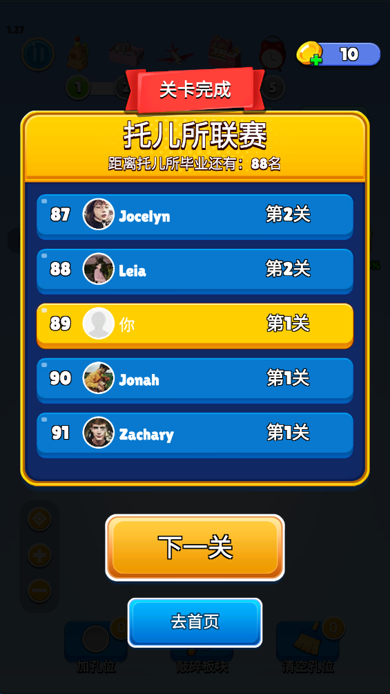 2.就像这样,只要满足三个相同颜色的就会在一起消除,然后进入下一个。