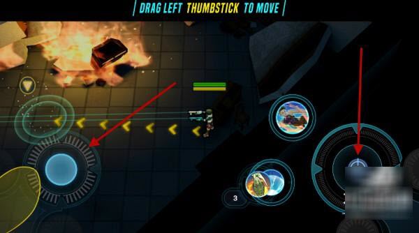 4.游戏开始时,左侧虚拟摇杆控制角色移动,右侧摇杆用于瞄准与射击操作。