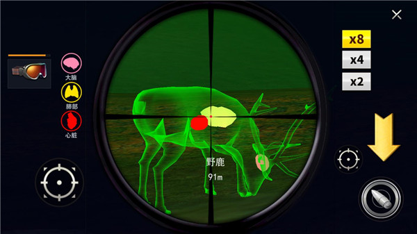 5.点击左上的红外眼镜可以准确的打击目标身体。