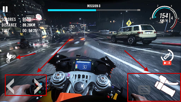 5.进入到游戏后,可以看到屏幕左侧可以控制摩托的方向,方向键上面可以做出特技动作,右侧按键为油门和刹车。