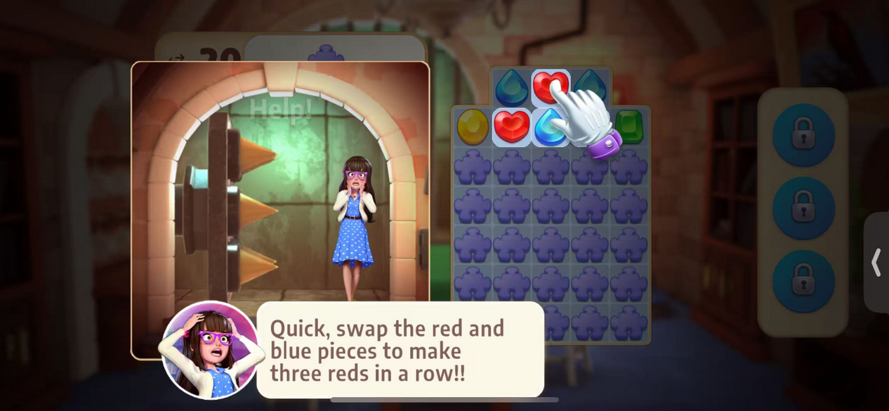 秘密谜题社团是一款融合了紧张推理与刺激三消解谜的创新游戏,玩家将进入一个由神秘恶棍组成的秘密社团,展开一场充满悬念的调查冒险。你的朋友布鲁克不幸卷入其中,成为这些恶棍的目标,而你将需要依靠敏锐的观察力和高超的解谜技巧,破解隐藏的谜团,揭露社团的阴谋。每个关卡中充满了不同的挑战,你需要运用策略与智慧,巧妙组合各种道具来获得更高的分数与奖励,逐步接近隐藏的真相。