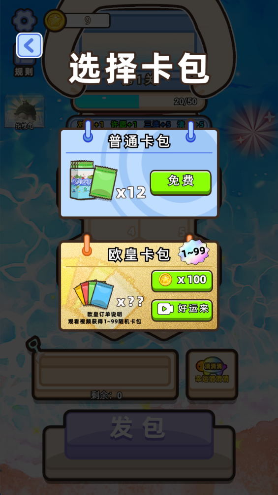 2.这里游玩的是第二种玩法,先选择一个卡包。