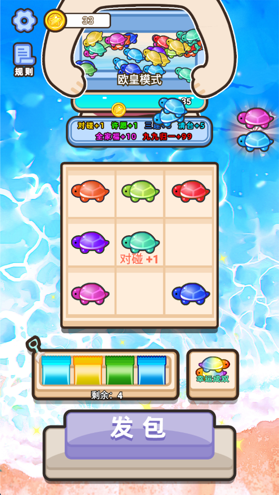 4.然后点击派发就可以放乌龟了,根据上面的规则来获得奖励。