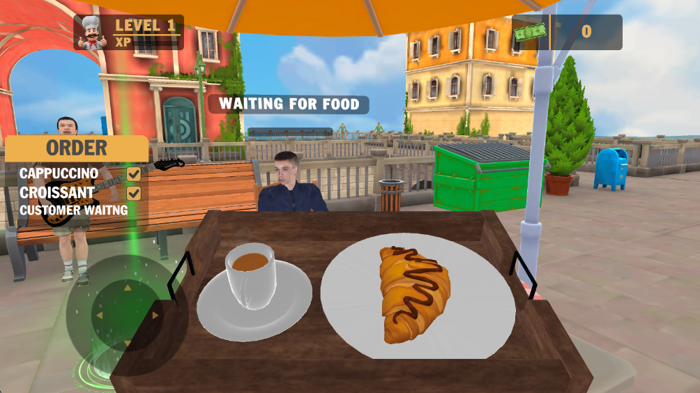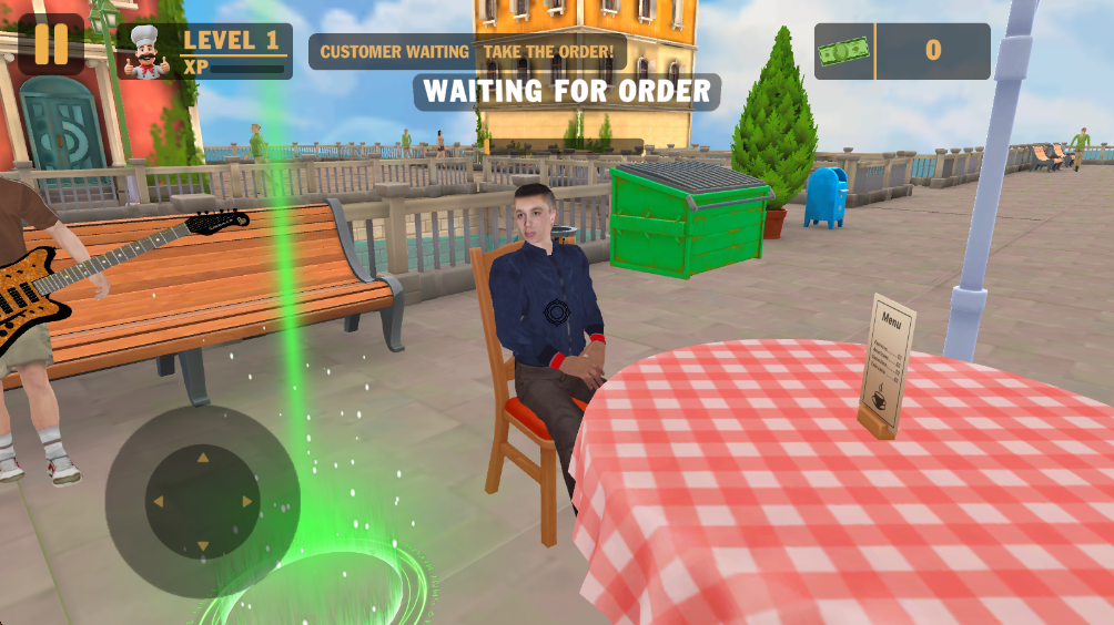 4.这是你的顾客,靠近绿色圆盘就可以接待。
