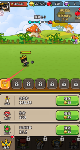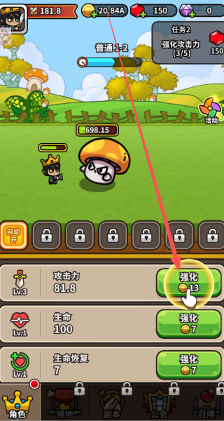 1.进入战场之后,可以使用金币来强化你的生命和攻击力。