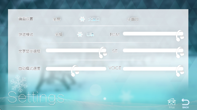 8.点击 “CONFIG” 可进入设置界面,调整画面(全屏 / 大窗口 / 小窗口)、快进模式、文字显示速度、自动模式速度及音量(SE、VOICE)等参数,优化游戏体验。