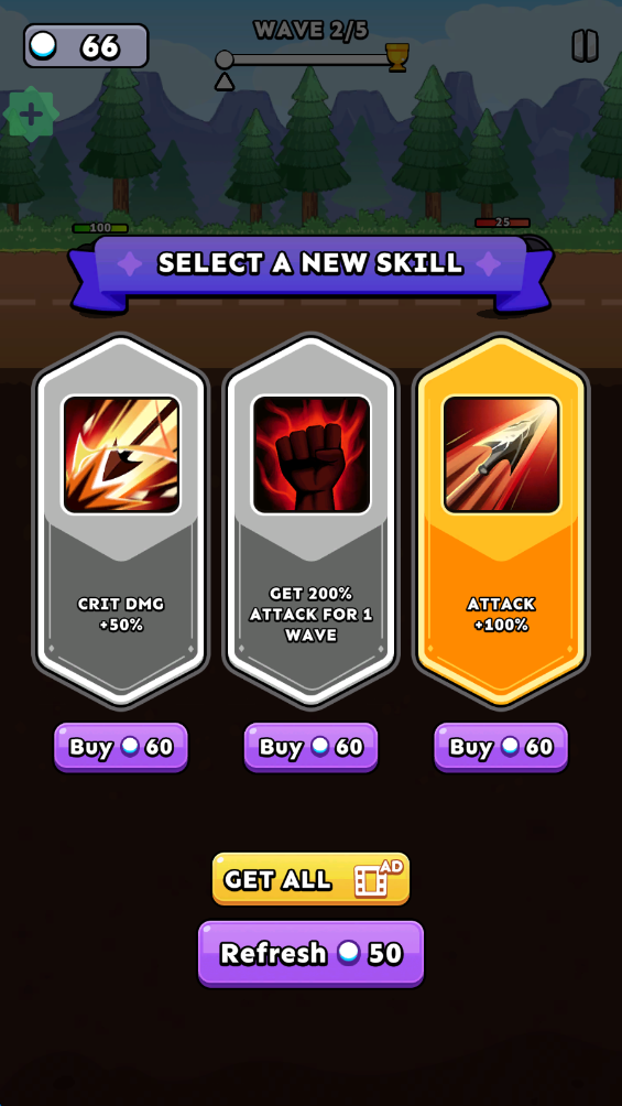 5.选择合适的技能可以增强实力,然后就可以完成章节的闯关了。