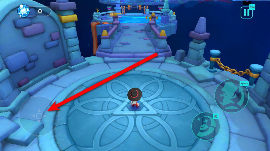 2.剧情结束之后你就可以操控拉比曼进行冒险了,使用左下角的摇杆可以移动角色。