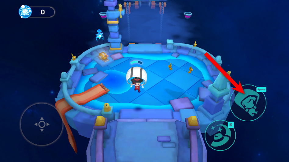 4.这个是跳跃,起跳之后不会直接落地,长按这个按键有短暂的缓慢降落效果。