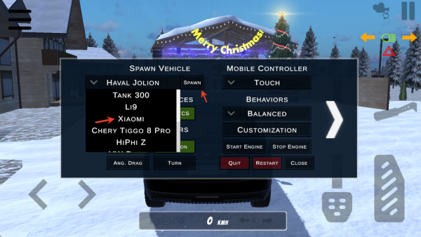 3.进入之后你就可以驾驶汽车了,如果想更换车型点击右上角的选项。