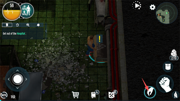 4.继续前进后,点击屏幕右下方的“拳头”徒手攻击,可以很轻松战胜丧鼠。