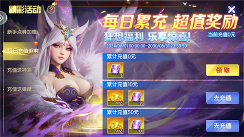 3、同时游戏内还有着大量充值返利活动,让你花更少的钱享受更多的优惠;