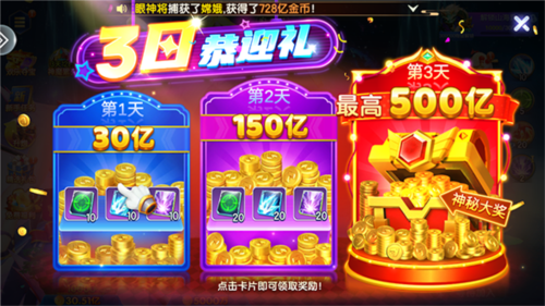 1、注册完进入游戏后就可以领取到上线豪礼;