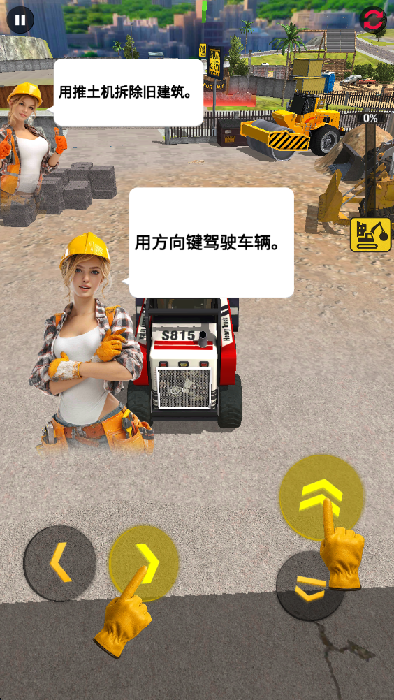 4.通过移动方向键控制挖机到达指定位置,拆除旧建筑。