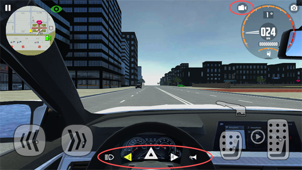 4.点屏幕右上角的“摄像头”,更换视角,屏幕下方的按键可操控车辆装置部分