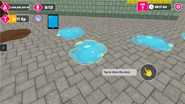 1.刚进入游戏玩家需要移动到场景中点击清理脏乱的地面。