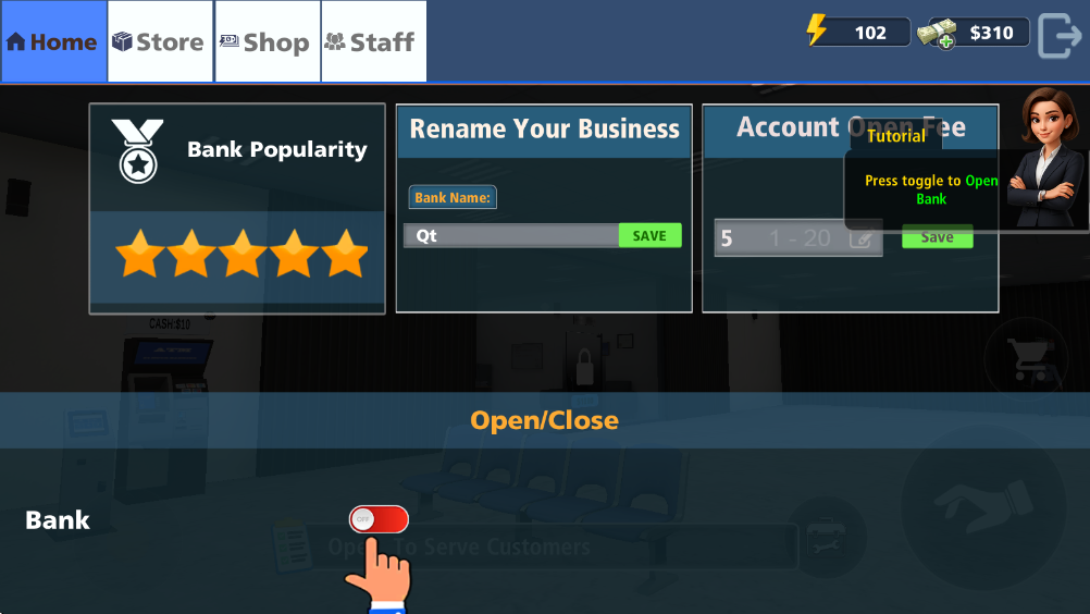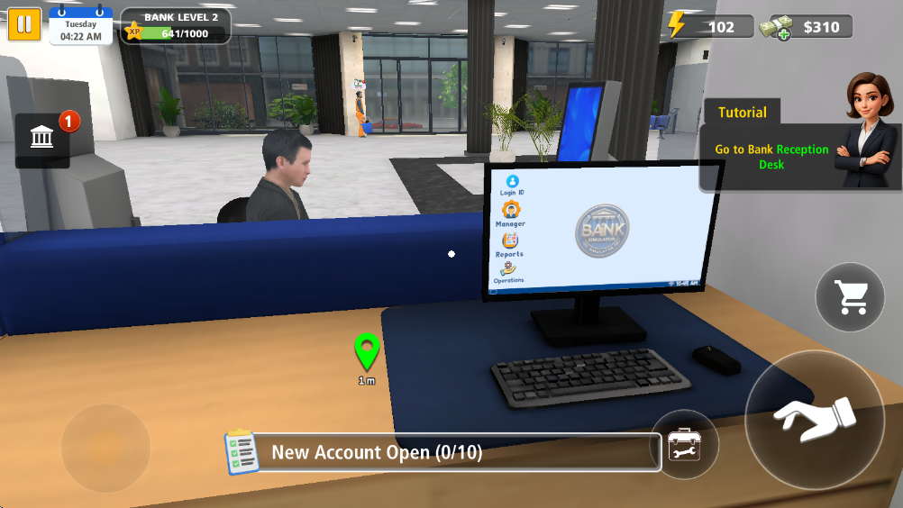 银行模拟器是一款结合了策略管理与自动化机制的商业经营游戏,玩家将从一名普通的出纳员开始,通过精明的投资决策和不断的战略调整,逐步将一家小型银行发展成全球金融巨头。通过持续的积累资金,你可以解锁更多的功能和升级,例如引入新的金融产品、投资房地产、扩展银行网络等。随着银行规模的扩大,你还将面临更复杂的决策,如如何平衡风险与收益、如何处理紧急贷款请求等。