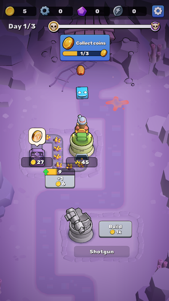 2.随着游戏推进,需要强化防御设施,升级诸如 “Shot-gun” 之类的防御建筑,提升防御能力,应对敌人进攻,遵循 “Fortify your defenses!” 的提示。