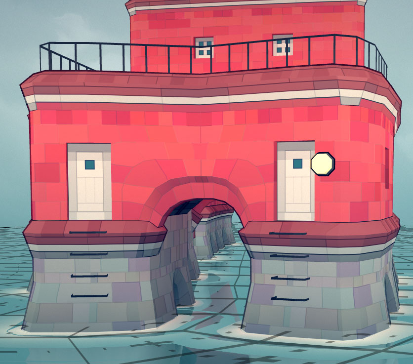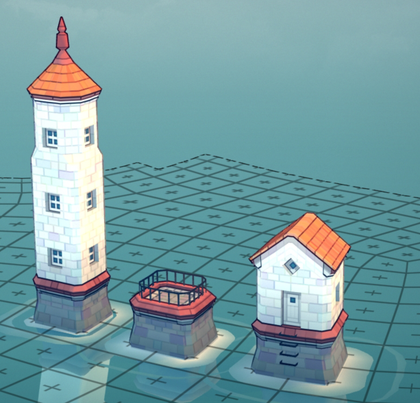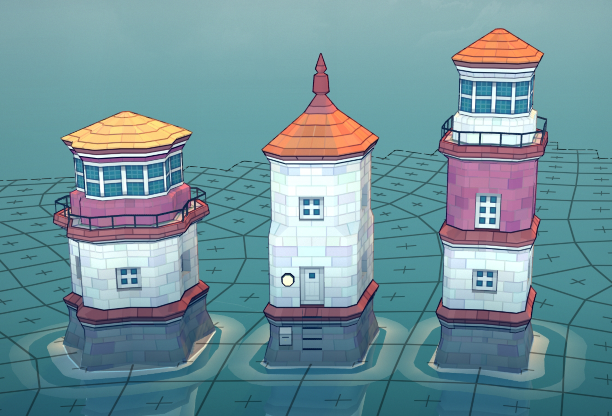 塔的基础上,顶部交替使用不同的两个颜色即可生成灯塔。
