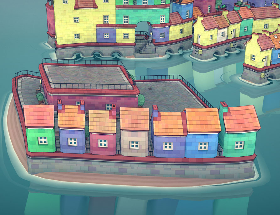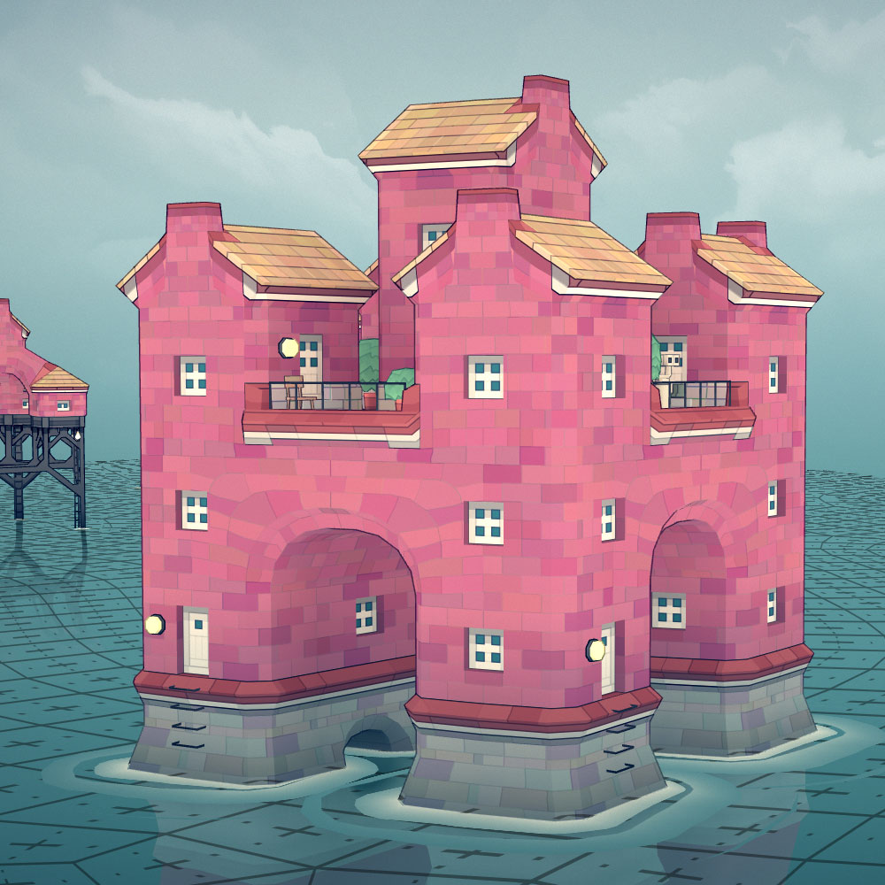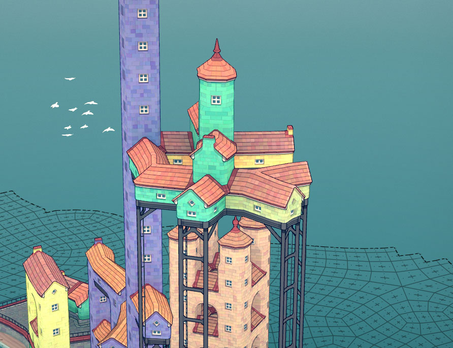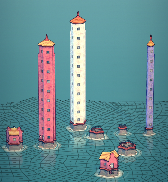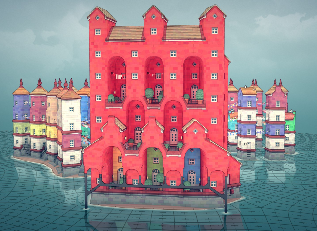 最顶部的建筑物将保留其独特的外观,而下方的建筑物将变成外观相似的方块。