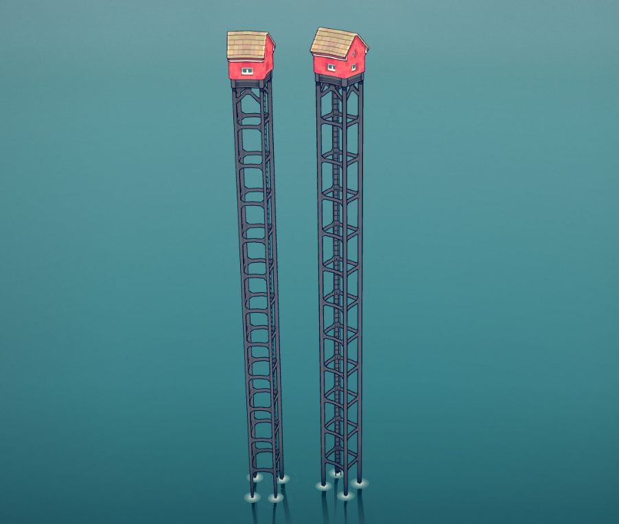 注:单列堆叠建筑移除下方的支撑建筑,可触发梯形脚手架。
