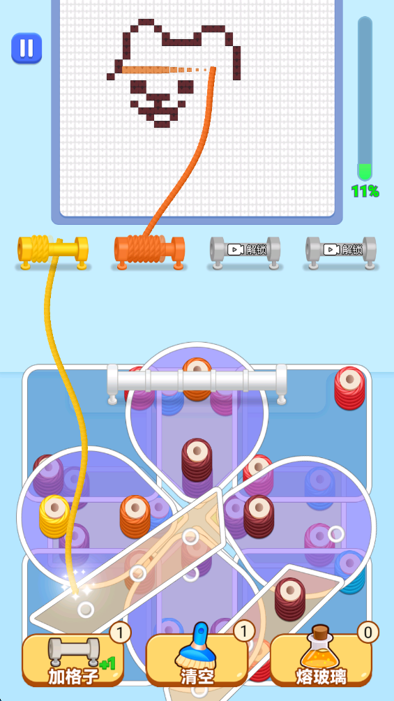 2.通过滑动屏幕匹配三个相同颜色的毛线球,连接后毛线会自动消除并释放缠绕的螺丝钉。