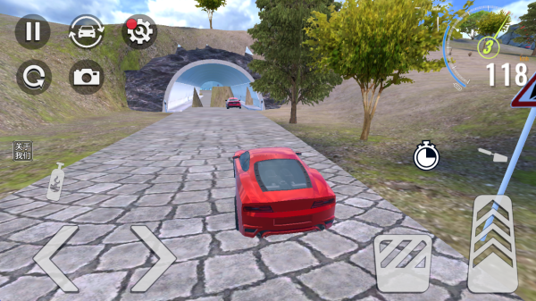 3.左侧控制车辆方向以及氮气,右侧控制刹车油门以及倒车,还能通过视角按钮进行驾驶视角切换。