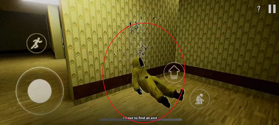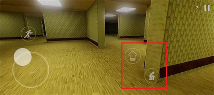 4.右边操控角色的奔跑和蹲下,探索更多后室场景。