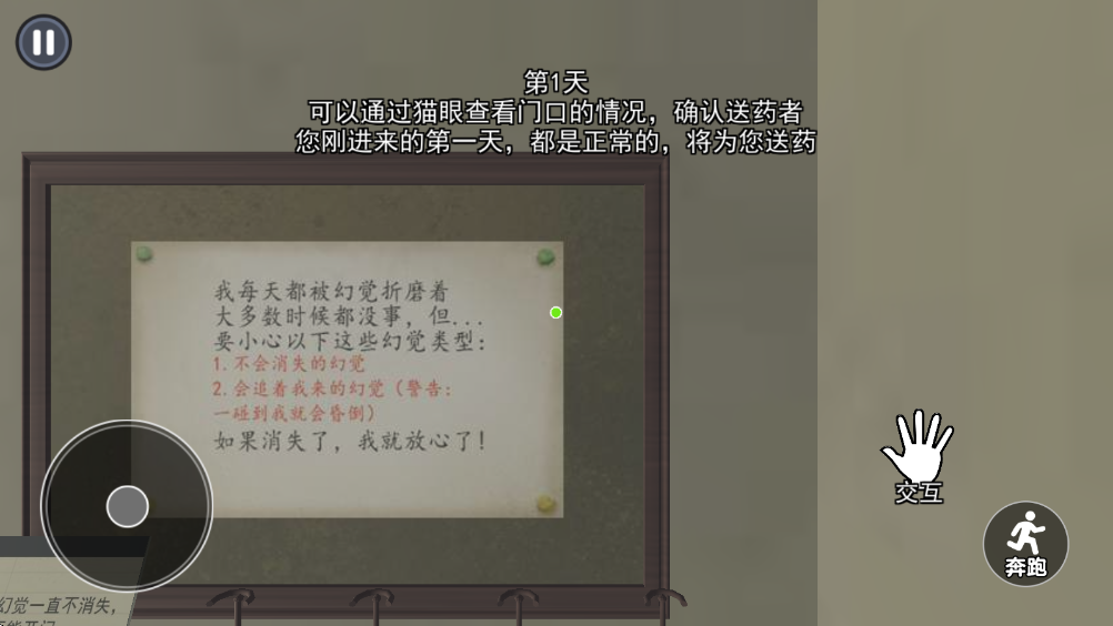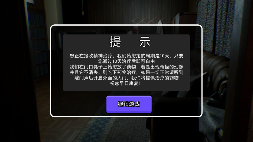 远离恐怖邻居是一款融合心理恐怖和迷宫解谜元素的沉浸式冒险游戏,你将扮演一名深陷精神困扰的患者,被困在一间昏暗、陌生的小屋里。时间、空间和记忆的界限已完全模糊,你的每一步行动都可能陷入幻觉的漩涡。你将通过选择药物的方式影响自己的心理状态,决定是接受访客带来的药物,还是冒险使用墙边的备用药瓶。每一个决策都关系到你在虚幻与现实之间的摇摆,错误的判断会让你的幻觉愈加强烈,现实感变得愈发遥远。