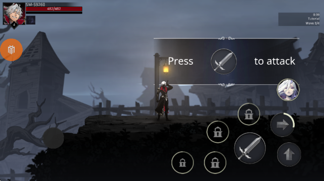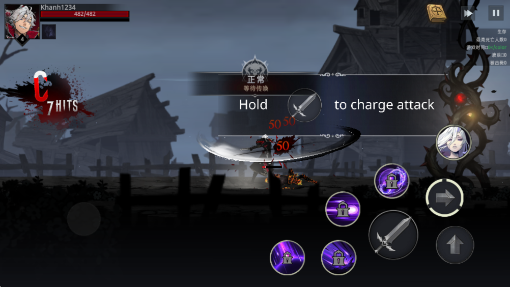 5.按下攻击键(剑形图标),练习基础攻击动作。