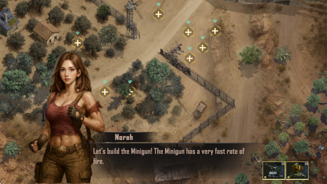 3.根据提示,角色Norah会引导建造首个炮塔(如Minigun机枪塔)。