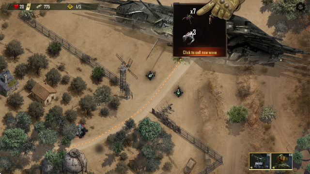 6.敌人会沿橙色路线进攻,可点击上方提示提前召唤新波次敌人,积累更多金币用于升级炮塔。