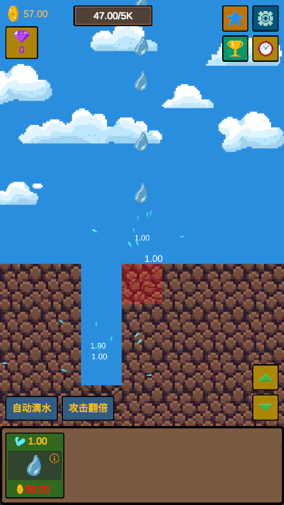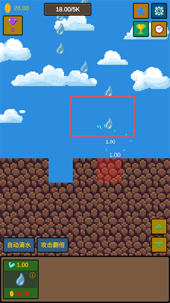 2.升级水滴后,每次滴落的伤害与金币收益都会显著提升,这是前期最划算的投资。