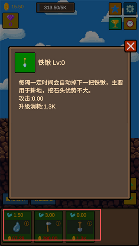 3.随着金币积累,你可以逐步解锁锤子、铁锹、盾牌等道具