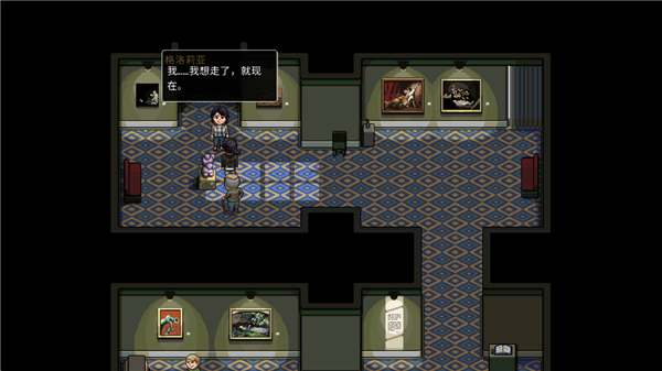 3.移动角色跟随者剧情来到展览馆,一直来到这里面左边的通道看见意外场景,你现在想立刻离开这里。
