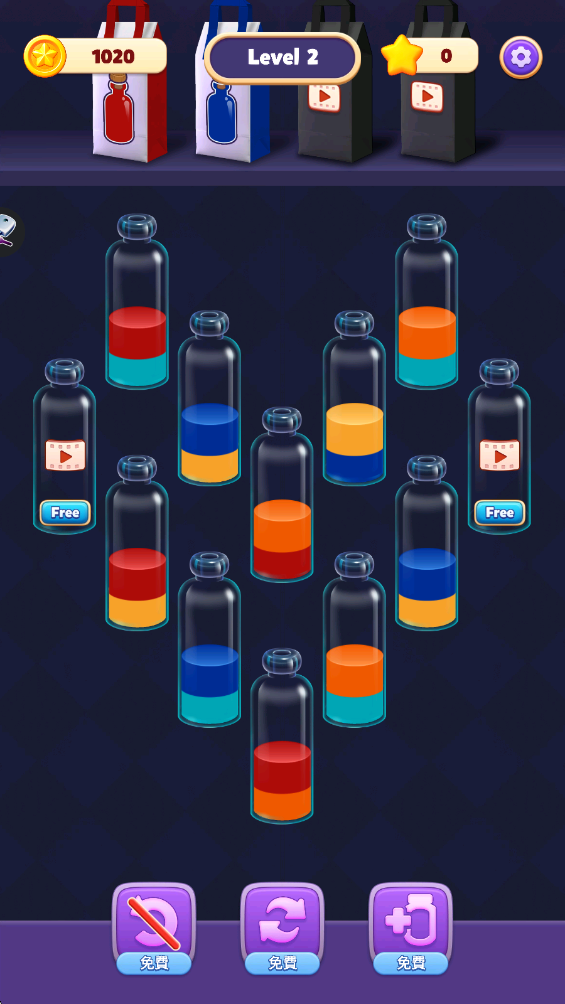 3.上方有袋子,完成收集的瓶子会按照上方的袋子颜色进行提交。