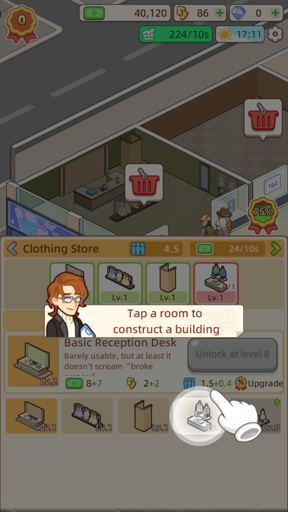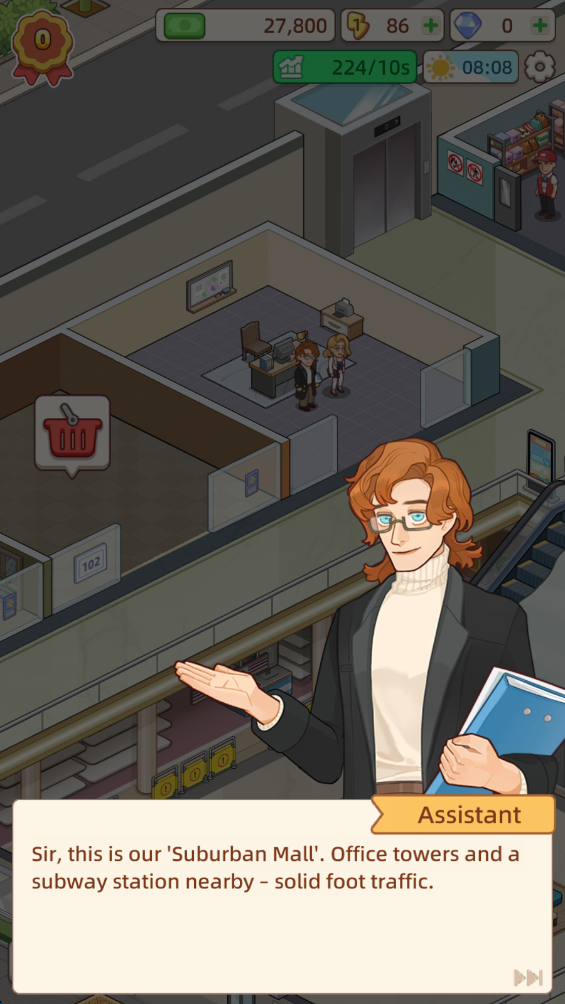 放置商城帝国是一款结合策略与放置玩法的商业模拟游戏,你将通过精明的投资和管理策略,一步步将一个荒废的地块发展成一座极具吸引力的商业帝国。,玩家将充分发挥策略眼光,不仅要通过开设多种商铺来满足不同消费者的需求,还要利用放置玩法让商场在离线时依然能持续产生收入。每一次商店的扩展、每一项设施的升级,都将带来新的商机和收益。