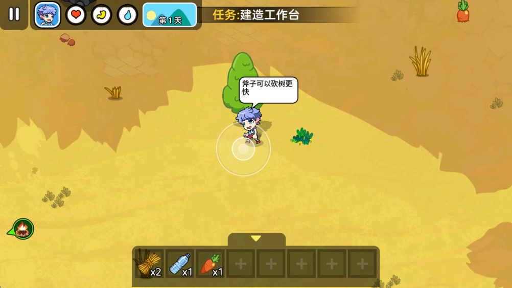 4.降落荒岛之后,和朋友一起移动角色,在荒岛探索,伐木采集资源,安全活过30天即可过关。